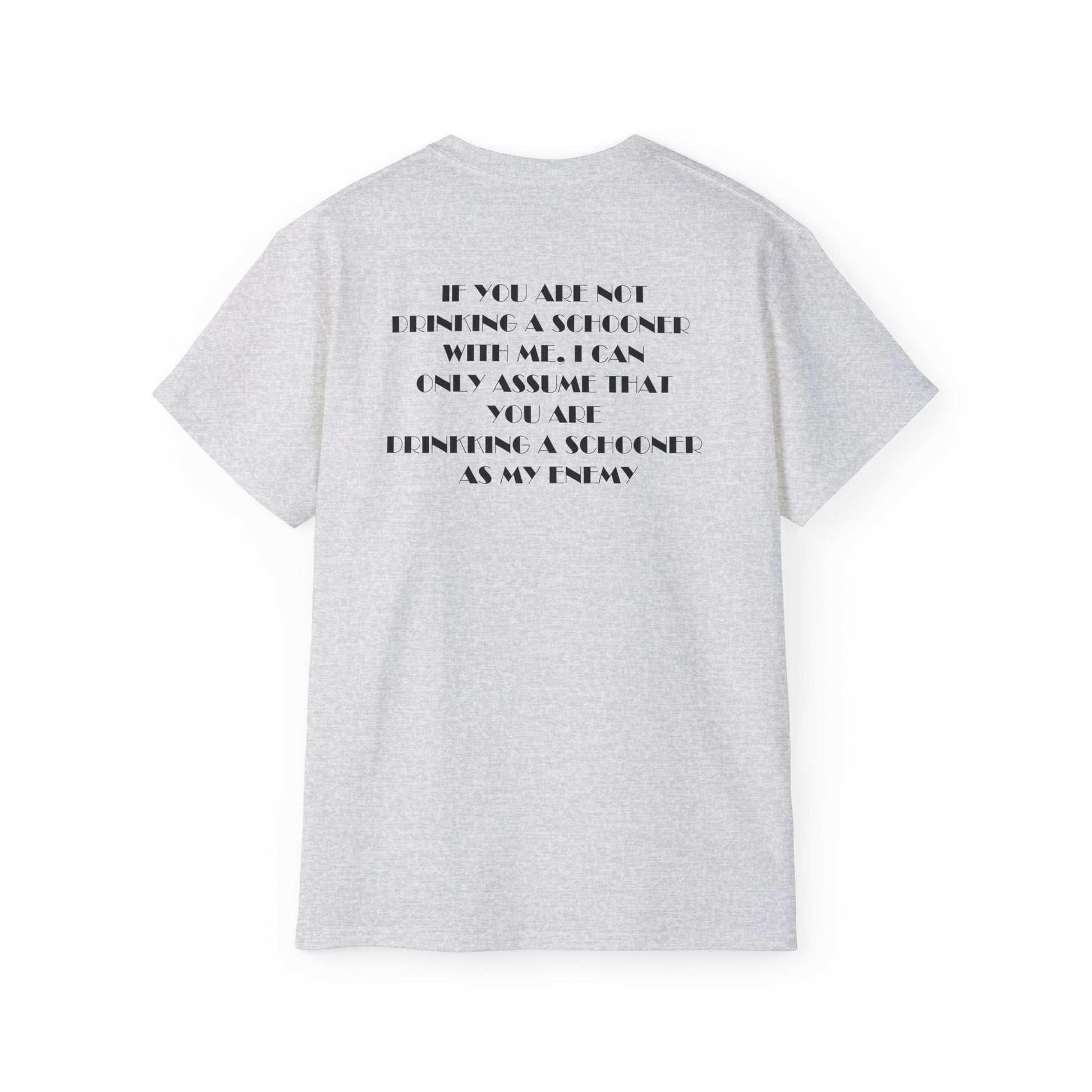 Back: If you are not drinking a schooner with me, I can only assume that you are drinking a schooner as my enemy